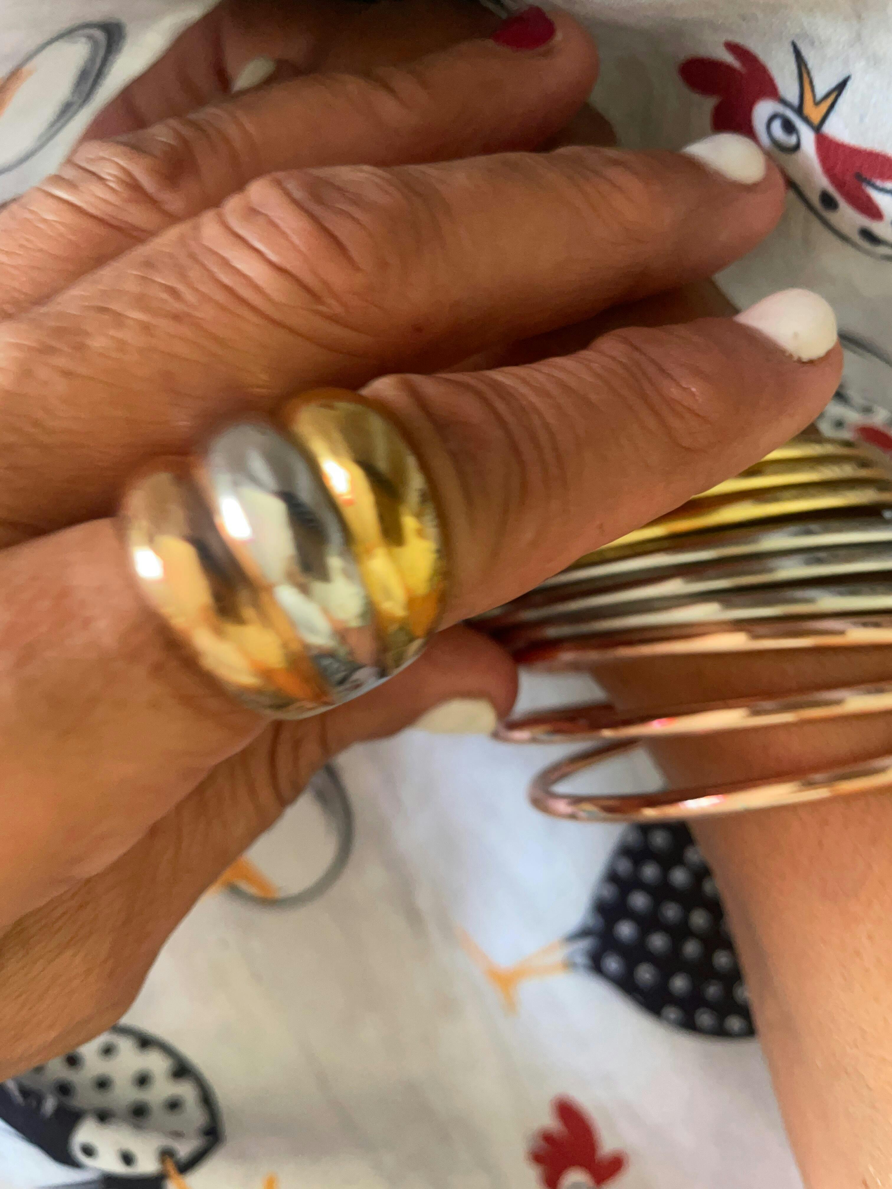 Añade un toque de elegancia atemporal con nuestro Set de Pulseras Tricolor “Eterna”, un conjunto de 9 brazaletes minimalistas elaborados en acero inoxidable 304 con recubrimiento PVD en oro de 18K, resistentes al agua y al desgaste.